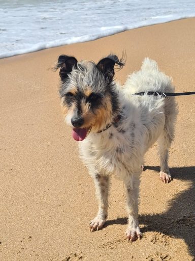 Chrissy ist ein absoluter Schatz, eben ein typischer Terrier, menschenbezogen, agil, sozial im Umgang mit anderen Hunden, immer gut gelaunt und immer gerne zusammen mit ihren Menschen unterwegs