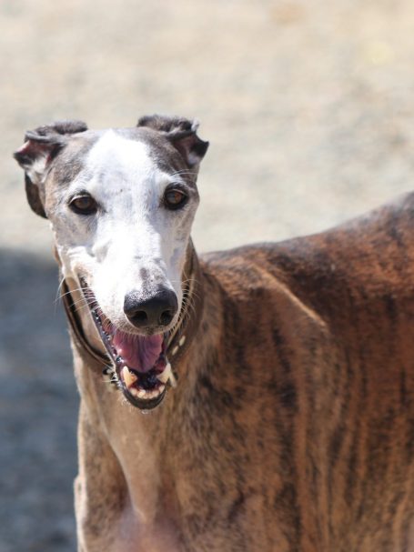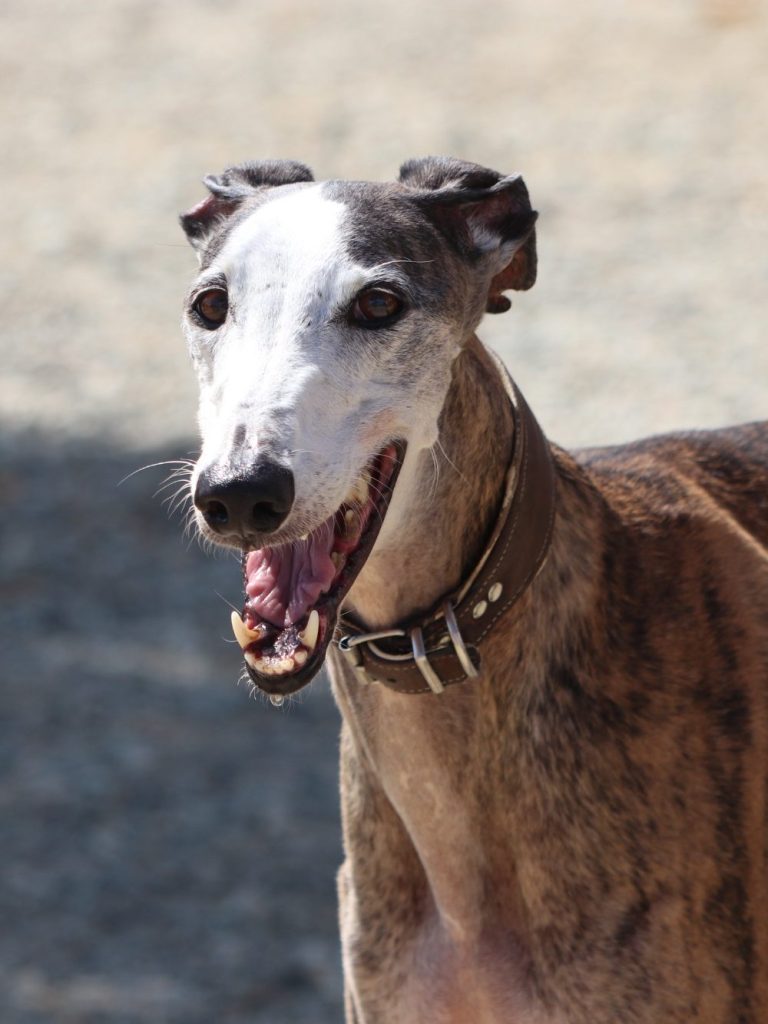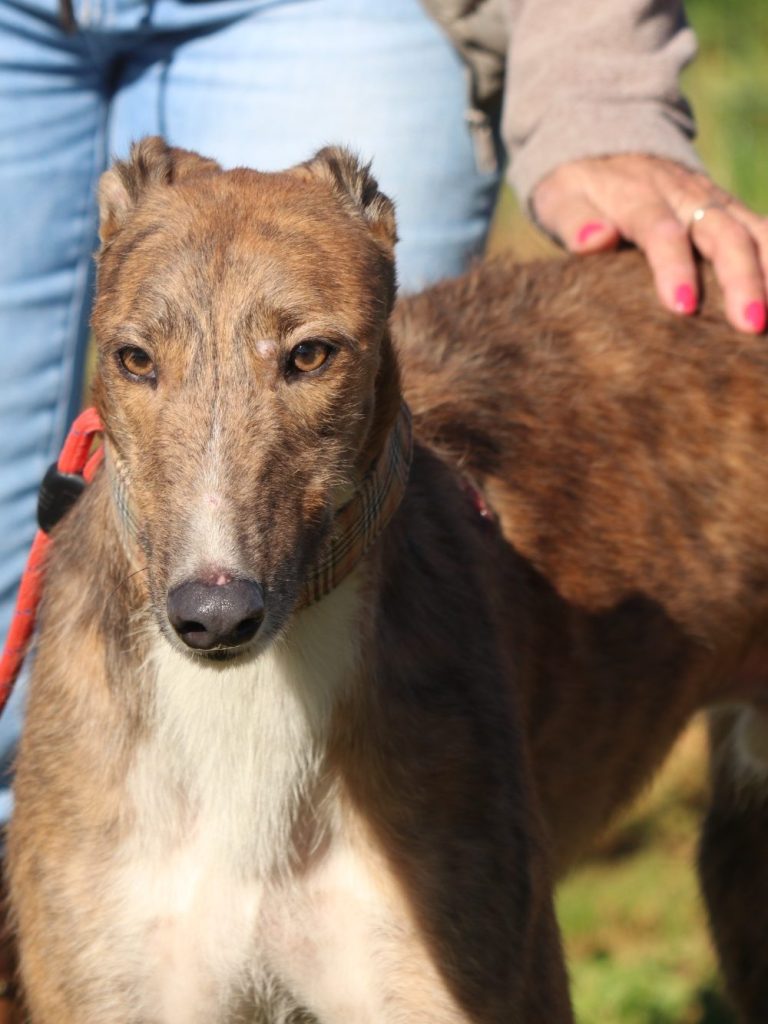 Der Rey ist ein total lieber und menschenbezogener Galgo mit ein wenig Greyeinschlag.