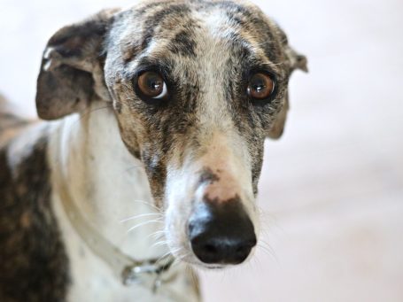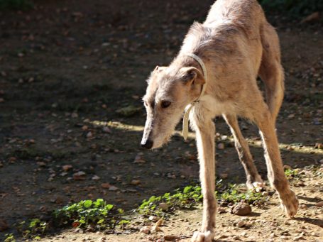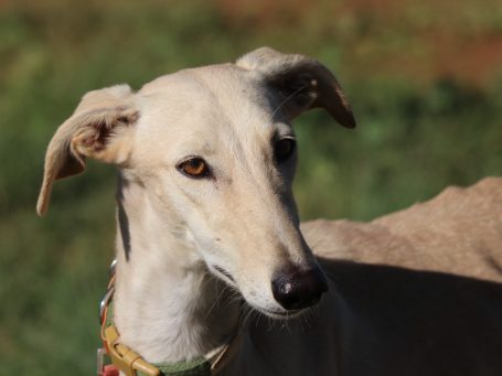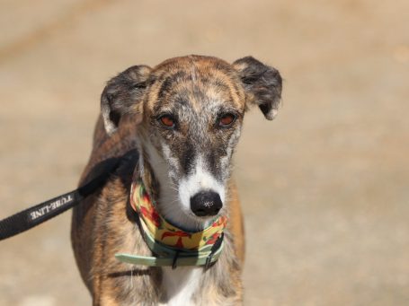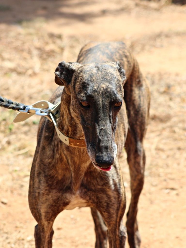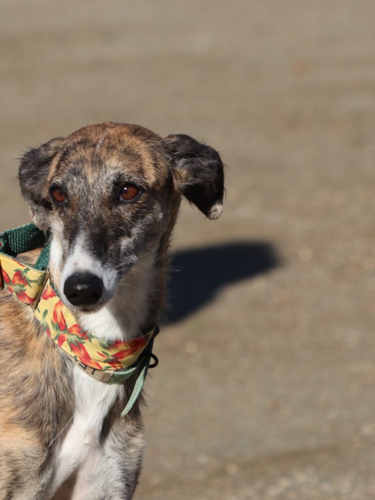 Coco ist eine ruhige zierliche, hübsche Galga, die immer ein wenig abwartend aussieht. Sie ist aber dennoch menschenbezogen und mag es auch gestreichelt zu werden.