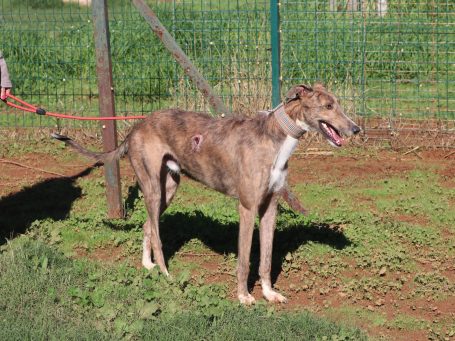 Den Vulcano haben wir von seinem Vorbesitzer übernommen und in die Auffangstation gebracht. Vulcano ist trotz seines noch jugendlichen Alters ein ruhiger und besonnener Galgo. Er hat keinerlei Umweltängste, fährt sicher und ruhig im Auto mit und geht gut an der Leine. Mit anderen Hunden ist er verträglich und sozial.